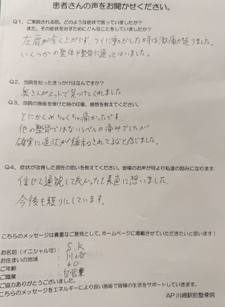 - 「毎朝着替える時に肩が動かなくてとても不便・・・」